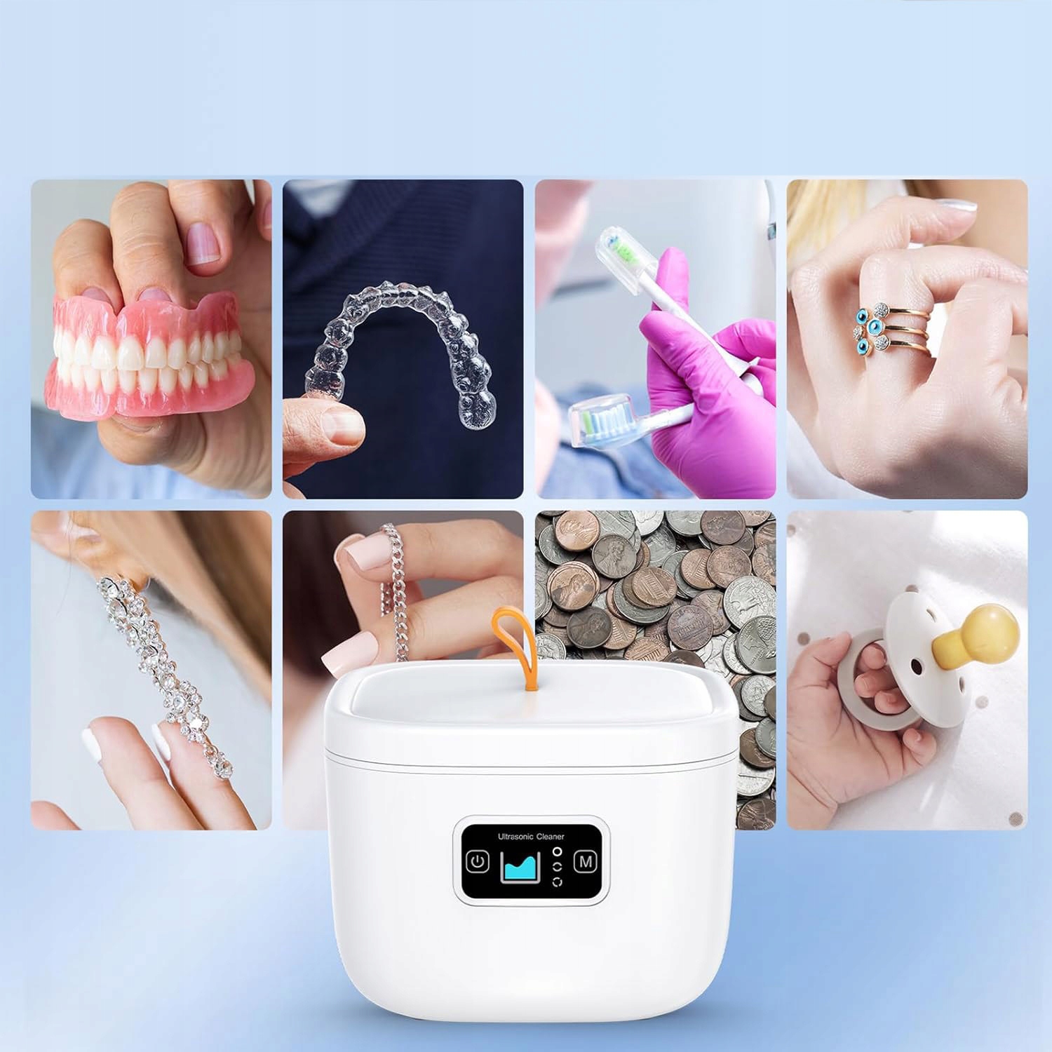 Використовуючи ультразвукові хвилі 42-45 кГц, він може проникати через проміжки та отвори в зубах і ефективно видаляти молекули на зубах, фіксуючи елементи, ортодонтичний апарат, позиції зубів, відбілюючі накладки, захисники на губах, зубних щитах і навіть ювелірних виробів, а також також ювелірні вироби глибокий.