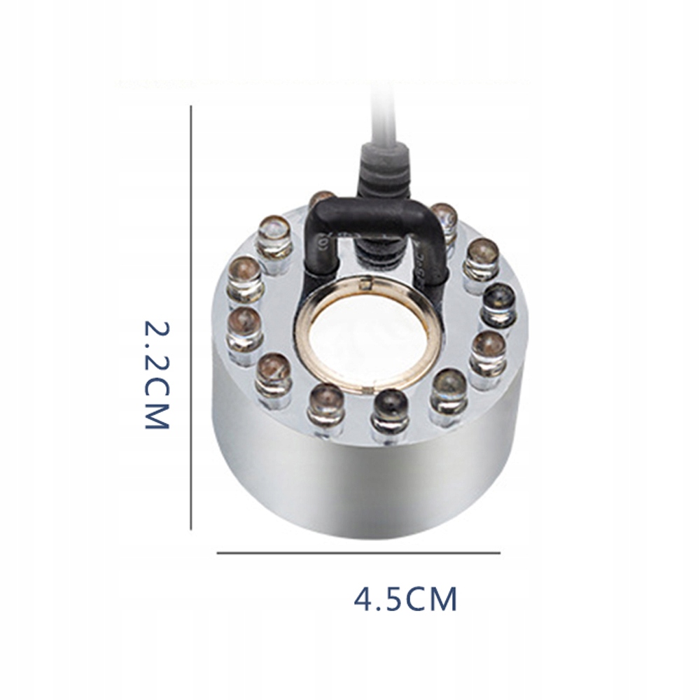 💕💕💕【 Деталі продукту】 Ультразвуковий спрасер містить європейську вилку; Розмір генератора туману становить 2,2 х 4,5 см. Об'єм атомізації 250-450 мл/год. Цинковий сплав. Він спалахує вночі, щоб привернути увагу. Коли рівень води низький, датчик рівня води автоматично вимикається. Він також ідеально підходить для використання в ставках, скельних садах та акваріумах. Покладіть його у воду і з’явиться туман.