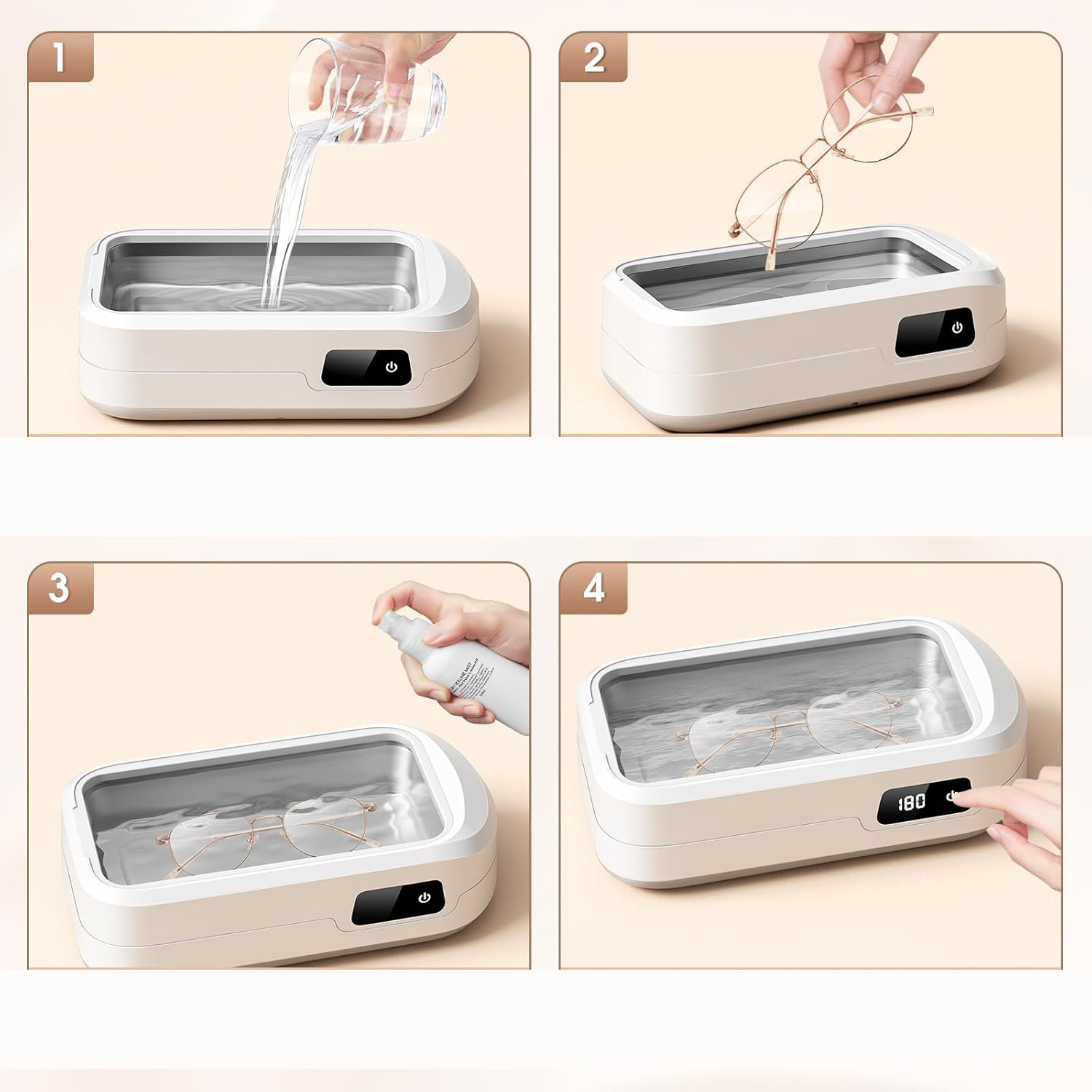 ✅✅4 режими очищення: Цифровий дисплей точно вказує на час очищення, 4 різні часи очищення (3/5/7/10 хвилин). 3-хвилинний режим очищається за допомогою без покриття окулярів, зубних протезів та ортодонтичних апаратів, 5-хвилинний глибокий режим підходить для водонепроникних прикрас і годинників, тоді як для глибокого очищення використовується 7 хвилин, а 10 хвилин для очищення.
