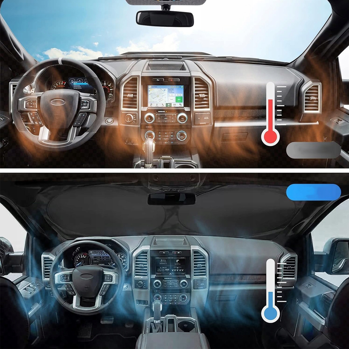 Просто перемістіть два сонячні щити на приладову панель і зберігайте їх у кріпленій мішці для подорожей, коли вони не використовуються. Зберігає транспортний засіб на холоді та захищає від пошкоджень, спричинених гарячим сонячним світлом.