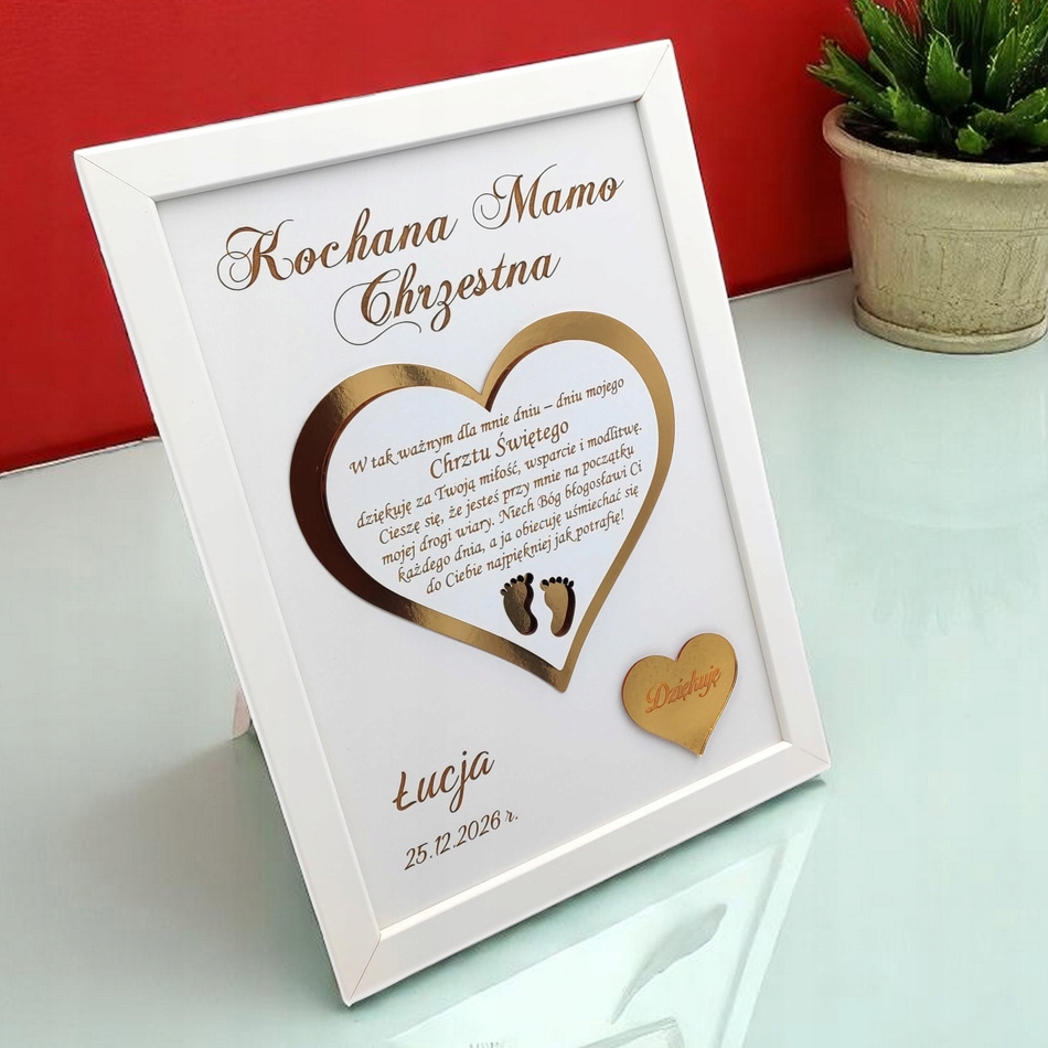 фон - це декоративна, гравірована дошка HDF білим. 4 З її допомогою ви можете передати свої найщиріші слова вдячності та любові, що стане вираженням визнання для участі хрещеного батька, хрещеного батька у житті дитини.
