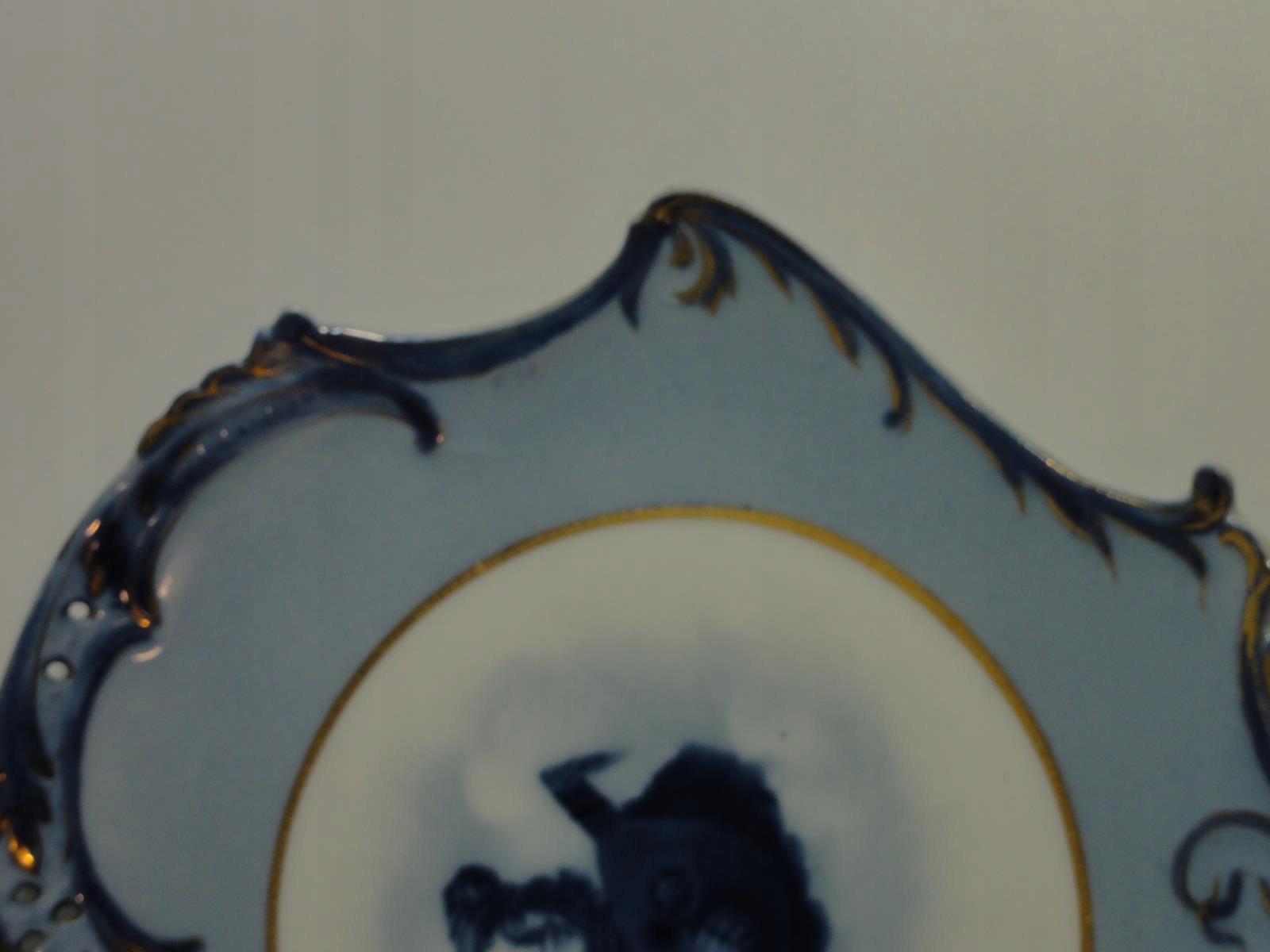 *з білої порцеляни, розписана кобальтом, прикрашена рельєфом, позолочена вручну,