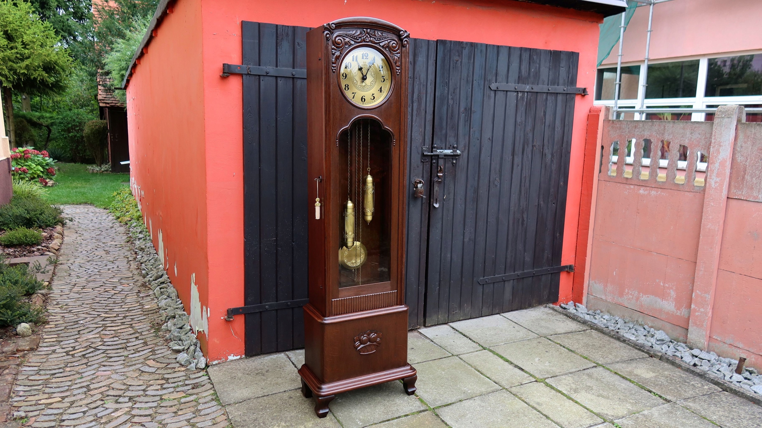 UNIKATOWY STOJĄCY DĘBOWY ZEGAR CHŁOP AJK GONG 8 STRUN PO RENOWACJI