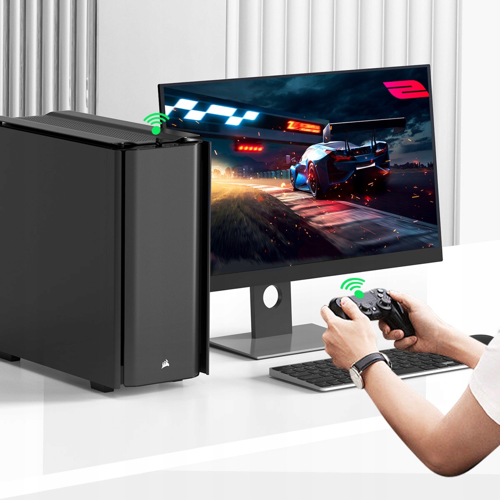 адаптер USB Bluetooth 5.3 дозволяє підключити настільний комп'ютер з різними пристроями в радіусі 30 метрів. Бездротова периферія, така як миші або клавіатури, динаміки, навушники, колодки та навіть принтери можуть бути підключені завдяки технології Bluetooth 5.3 без необхідності встановити драйвери-підключити адаптер до порту USB та працює.