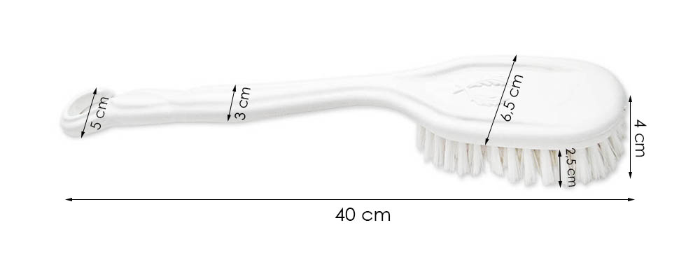 Універсальна задня щітка виготовлена з високоякісного пластику. Практична та неймовірно зручна, пральна машина італійського виробництва має широку ручку, яка дозволяє повісити річ у легкодоступному місці. Спеціальний дизайн ручки запобігає ковзанню щітки під час використання води або мила під час купання. Рельєфні візерунки надають пральній машині ніжного вигляду. Сама щітка оснащена тонкими щільними щетинками з пластику. На перший погляд щетина здається трохи жорсткою, але вона відмінно виконує свою функцію і дуже приємна на дотик.