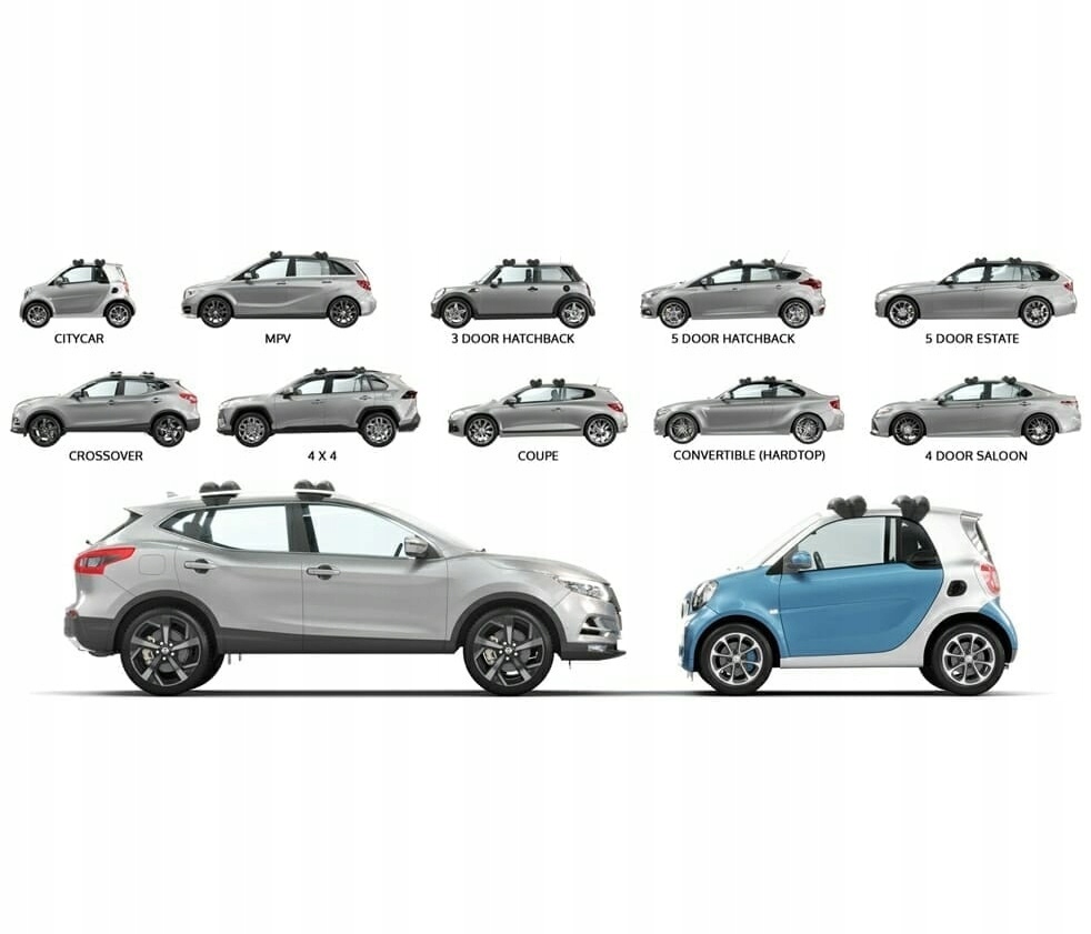 Handirack підходить для більшості автомобілів 2, 3, 4 та 5-дверима, фургона, купе та 4х4, а також може використовуватися для автомобілів із скляними панорамними дахами або віконами на даху.