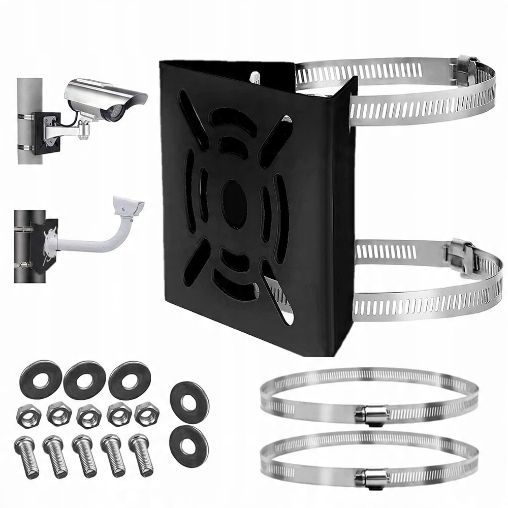 Це кріплення підходить для встановлення камер відеоспостереження, є легким і простим у встановленні та має регульований кут встановлення.