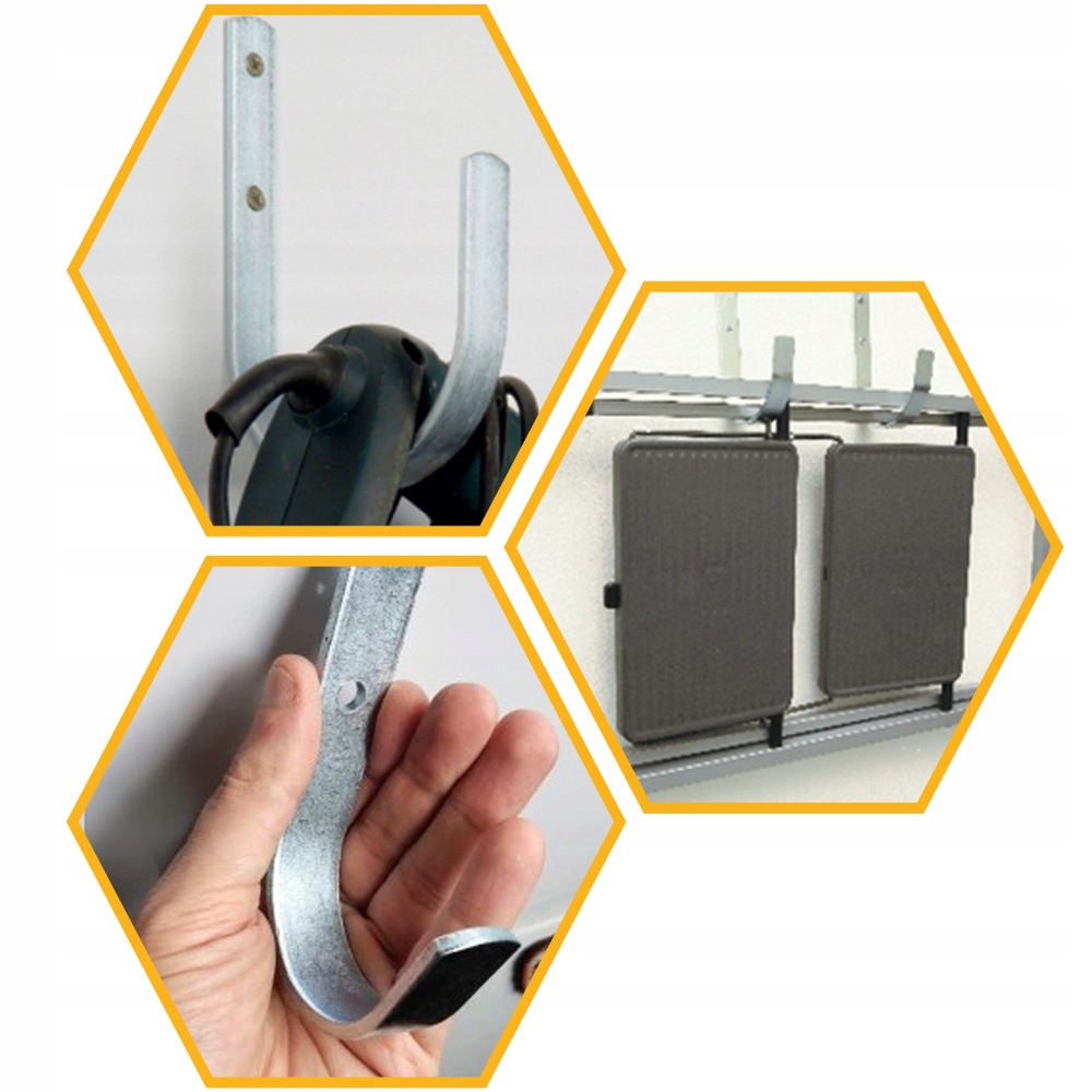 Гачок ідеально підходить для гаражів, майстерень та комунальних кімнат, а зігнута структура запобігає можливостям об'єкта.