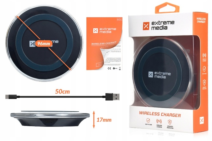 - Довжина кабелю: 50 смВміст набору: індуктивний зарядний пристрій, USB-кабель, посібник користувача польською мовою, упаковка.