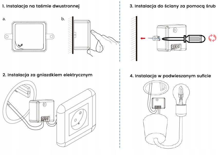 Ви можете легко і швидко перетворити будь -яку розетку та лампу в елемент, який є частиною інтелектуального будинку, завданням якого є управління віддаленим або автоматичним управлінням як частину раніше запрограмованого сценарію. невеликі розміри дозволяють встановити банку в банку під розеткою або кріпленням лампи.