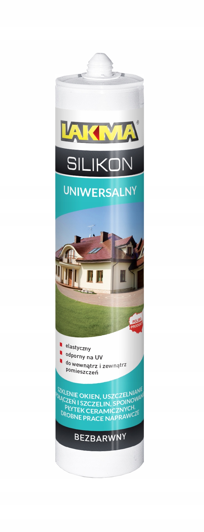 Lakma Universal Silicone є гнучким силіконовим герметиком із системою затвердіння ацетату. не -стонадцятий і загартований з вологою з повітря. Це дає високу та постійно гнучку герметизацію, повністю стійку до води (включаючи морську воду), олії, кислот, лугу, жирів, засобів для очищення та миючих засобів, а також низьких та високих температур. Герметизація міцна, повністю стійка до змінних погодних умов та УФ -випромінювання . Переваги продукту