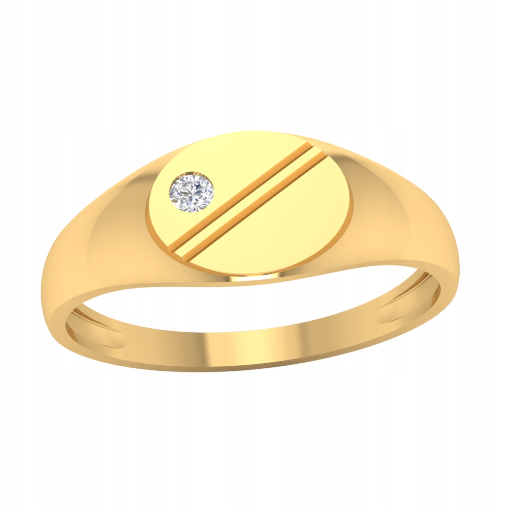 Універсальна каблучка-печатка із золота 585. Прикраса підійде як жінкам, так і чоловікам. Крихітний білий циркон з красивою огранкою, який чарівним чином відбиває світло, вбудований в пластину. Діамантові огранки, що прикрашають корону, чудово підкреслюють циркони і блиск дорогоцінного металу золота.