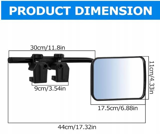 Просто прикріпіть універсальний затискач для розширення дзеркал до причепа. Крім того, дзеркало буксирування підходить до більшості транспортних засобів, напр.