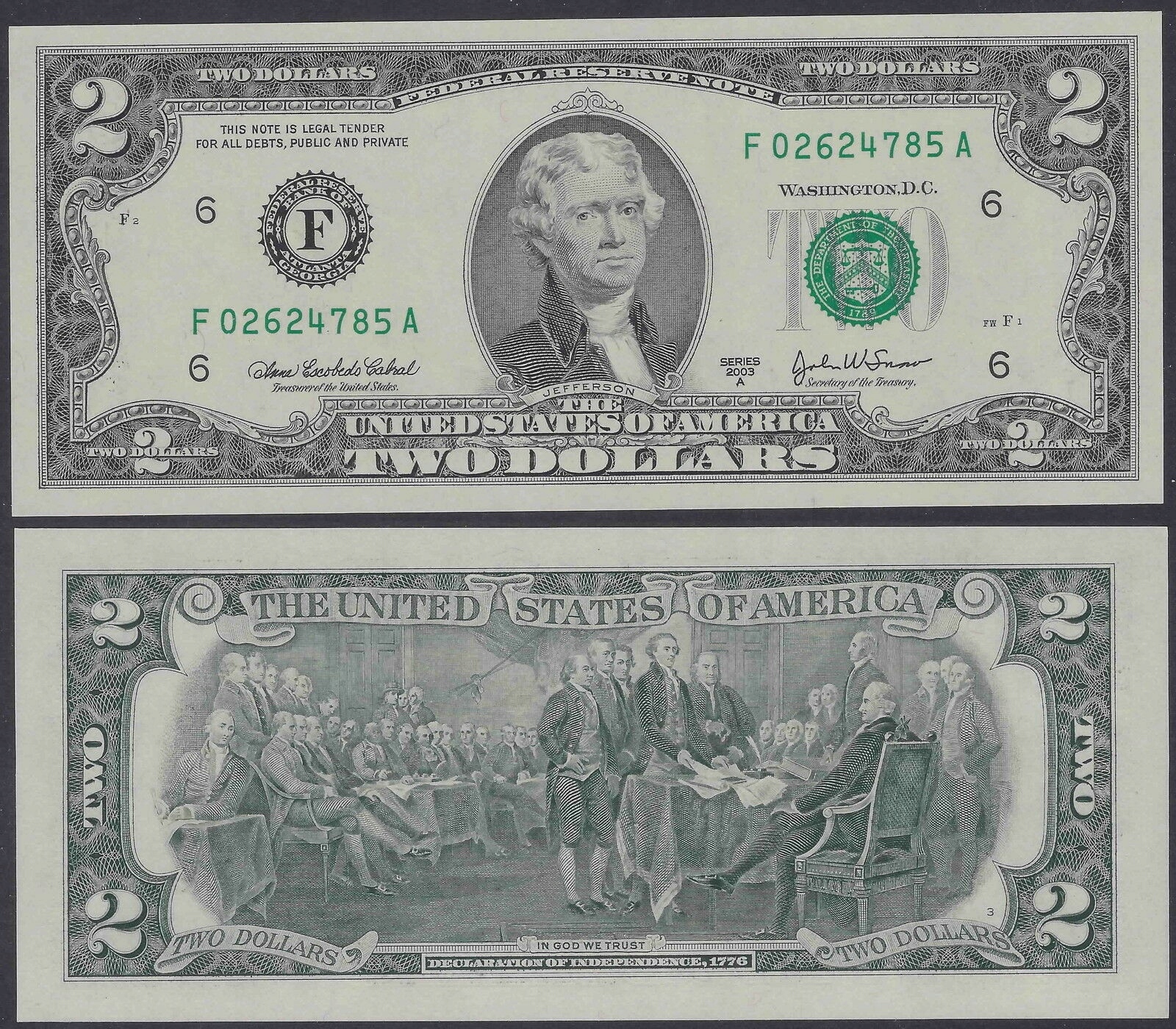 USA 2 Dollars 2003A P-516b F6 - Atlanta UNC