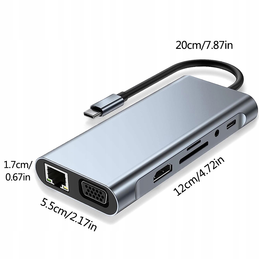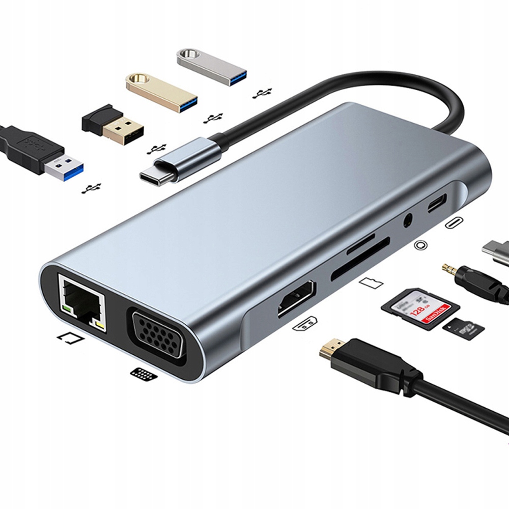 - ☑️【USB-КОНЦЕНТРАТОР 11 в 1】:включає 1 інтерфейс USB3.0, 3 інтерфейси USB2.0, 1 інтерфейс PD, 1 відеовихід 4K HDMI, 1 Інтерфейс VGA «чоловік-жінка», 1 мережевий порт RJ45 і 1 аудіовихід, слот для зчитування карт SD / Micro SD, сумісний із MacBook Pro/Air, Chromebook та іншими пристроями Type-C.