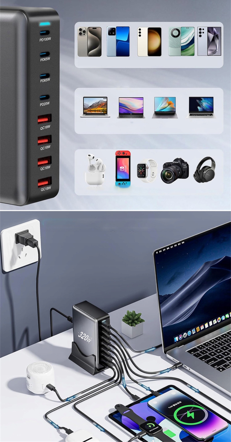 USB-C USB Fast зарядний пристрій для PD QC Оригінальний GAN3 живлення 320 Вт