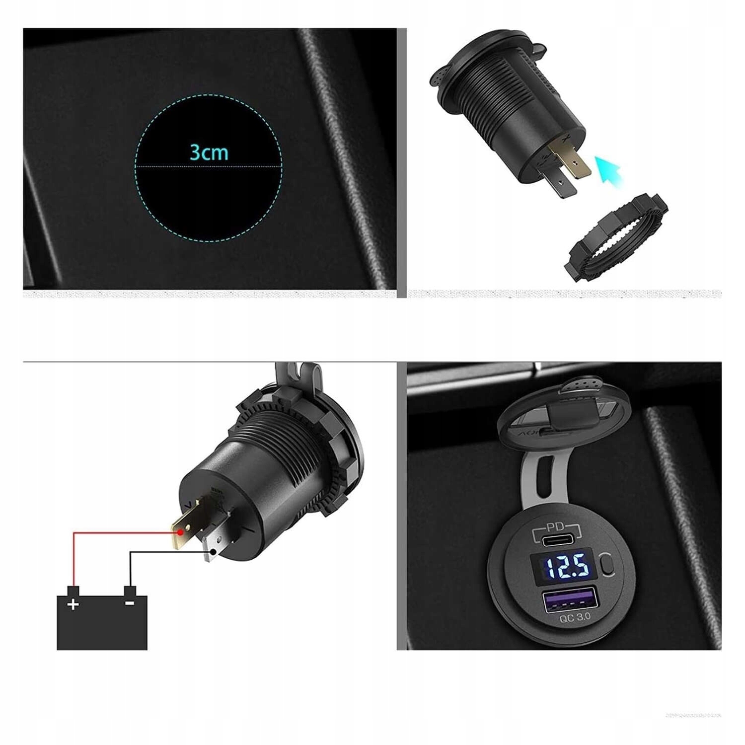 USB QC 3.0 Автомобільний зарядний пристрій USB-C C PD Гніздо прикурювача Вольтметр