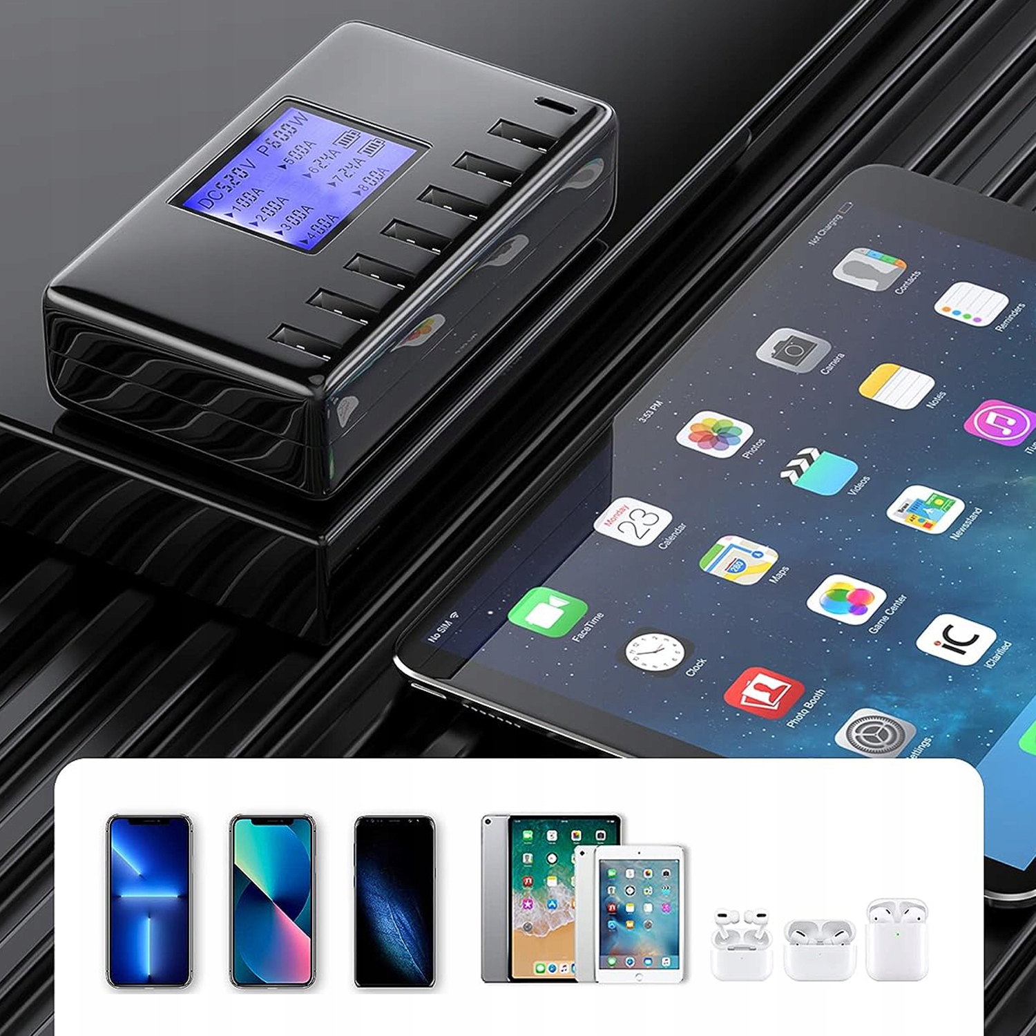 USB зарядна станція 5V/12a 60W 8 USB -порти РК -дисплей
