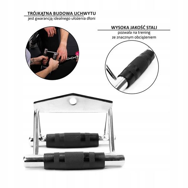 - РУЧКА UW04 HMS UW04 HMS - подвійна ручка, призначена для тренувань на верхньому і нижньому шківах. Використовується для тренування м'язів спини, але також можна використовувати для вправ з половиною штанги (інша половина лежить на підлозі). Поперечина ідеально вписується в центр рукоятки, дозволяючи вільно виконувати вправу з гребками, половиною поперечини в нижньому положенні тіла. Трикутна структура рукоятки гарантує ідеальне положення руки і забезпечує правильний рух під час виконання вправи. Прогумована рукоятка забезпечує міцний хват і запобігає вислизанню інструменту з руки, при цьому вимагає більш міцного захоплення. Завдяки цьому ми також працюємо над розвитком м'язів передпліччя. Не надто широка відстань між ручками полегшує дотримання правильної траєкторії рухів, тобто утримання ліктів близько до тіла. UW04 виготовлений з високоякісної хромованої сталі, що дозволяє проводити тренування зі значними навантаженнями. Модель UW04 допоможе легко і ефективно розвинути м'язи спини, які, на думку деяких, є найважливішими для нашої м'язової системи. Специфікація: Матеріал: хромована сталь Довжина захватної частини (мм): 110 Діаметр захватної частини (мм): 32 Кількість місць захоплення: 2 Відстань між ручками (мм): 105 Ручка: прогумована Розміри: довжина (мм): 185 ширина (мм): 170 висота (мм): 125 Діаметр отвору (мм): 15 Вага виробу (кг): 1.88