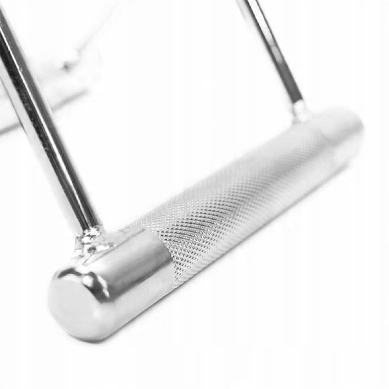 Трикутна структура рукоятки гарантує ідеальне положення рук і забезпечує правильний рух під час виконання вправи. Груба сталева рукоятка забезпечує надійний хват і запобігає вислизанню інструменту з руки, при цьому вимагає більш міцного захоплення. Завдяки цьому ми також працюємо над розвитком м'язів передпліччя. Не надто широкий відстань рукоятки полегшує дотримання правильної траєкторії руху, тобто утримання ліктів близько до тіла. Виготовлена з високоякісної сталі, дозволяє тренуватися зі значним навантаженням.
