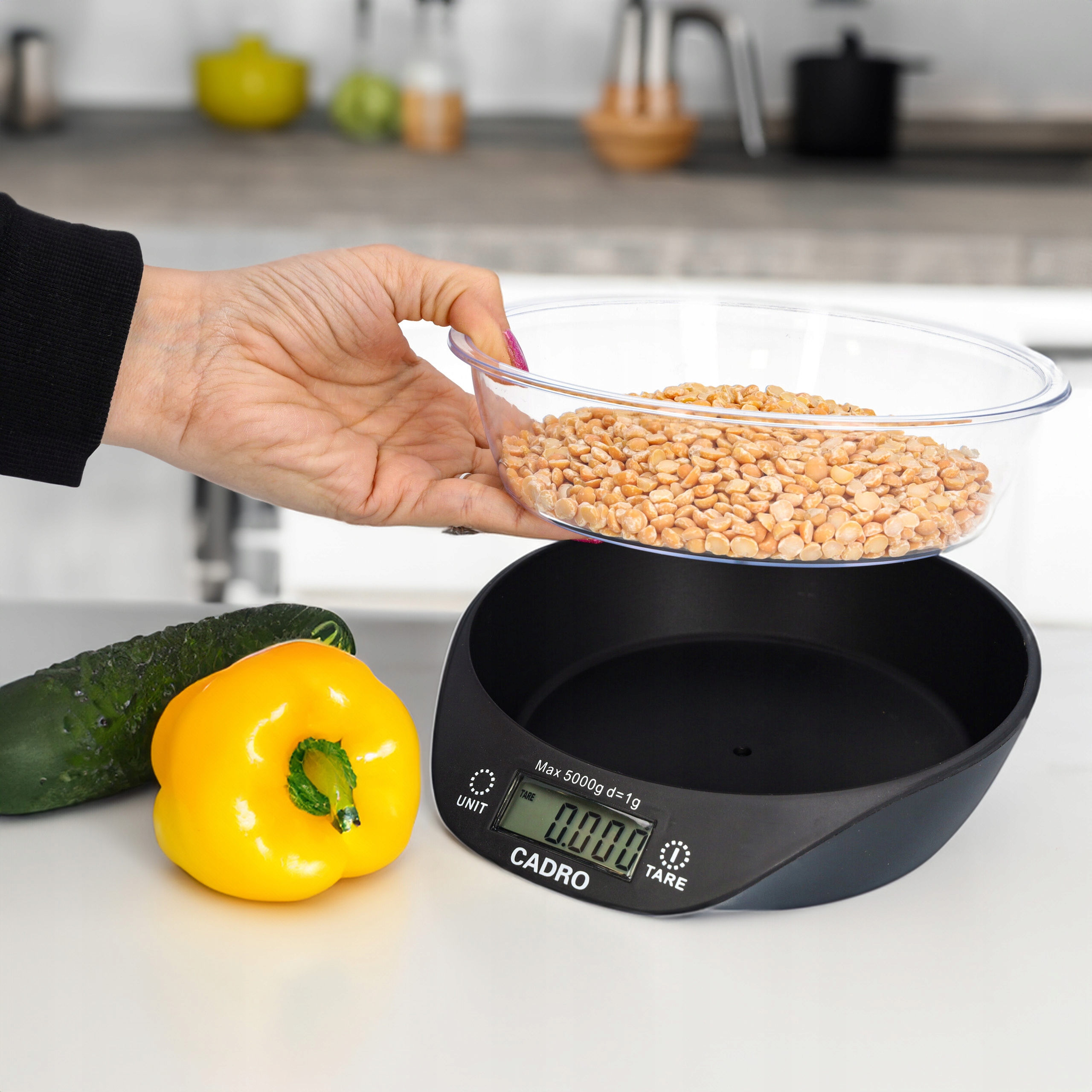 Електронна кухонна шкала з мискою з анти -Slip Precision Black 5 кг