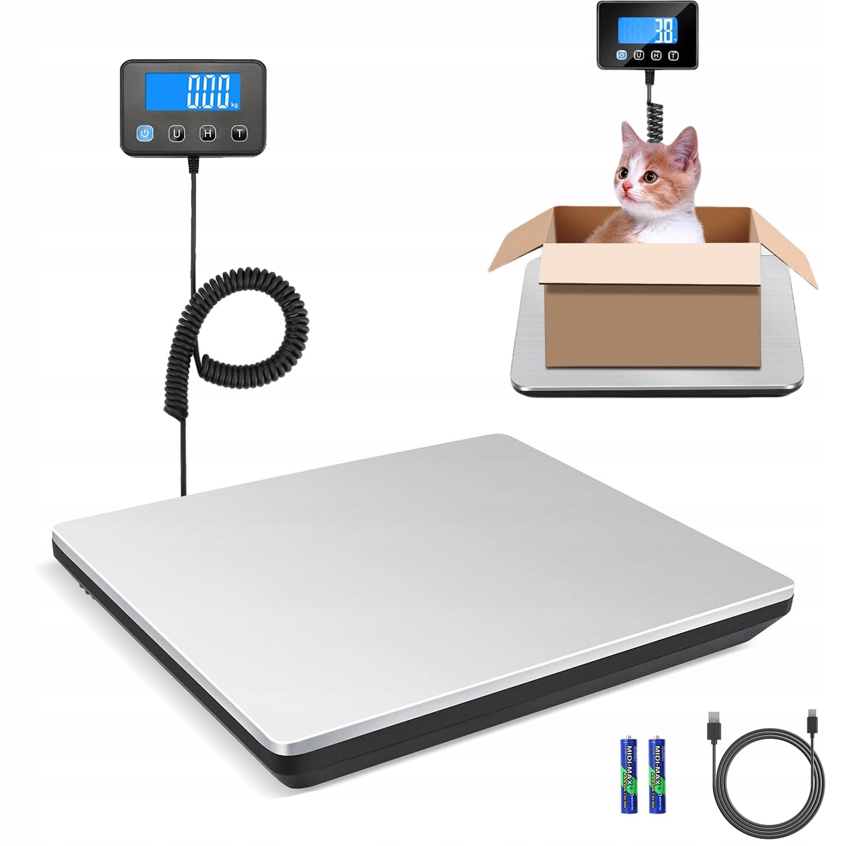 Поштова шкала 200 кг, міцна вага цифрової посилки з РК -дисплеєм/Hold/TARA, поштовою вагою з нержавіючої сталі для доставки посилків/багажу/пошти/тварин, батареї та джерела живлення через USB (срібло)