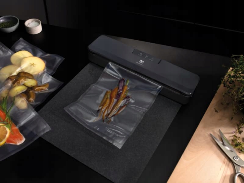 За допомогою нового вакуумного запаювача Electrolux ви можете герметично запечатати рибу та м'ясо за лічені секунди. Завдяки цьому продукти залишаються свіжими до 5 разів довше.