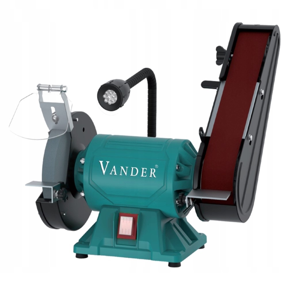 Настільна шліфувальна машина з стрічкою VSS716 від польського бренду Vander - це базове обладнання для домашньої майстерні, гаража або сервіс Центр. Прилад виготовлений повністю з металу, включаючи корпус і кришки, що робить його придатним для експлуатації в складних умовах і стійким до механічних пошкоджень і зносу. Серцем приладу є міцнийасинхронний електродвигун потужністю 350Вт, який дозволяє працювати з різними видами матеріалів навіть під великим навантаженням і тривалий час. Асинхронний двигун набагато менше несправний, ніж щіткові двигуни, і гарантує довший час роботи без необхідності заміни компонентів. Завдяки відповідно налаштованій потужності двигуна пристрій не створює надмірних вібрацій і шуму - тиха і ефективна робота є надзвичайно важливими перевагами такого обладнання. М'ясорубка оснащена світлодіодним підсвічуванням для роботи в погано освітлених місцях. Для адаптації болгарки до роботи в складних умовах з підвищеною запиленістю виробник оснастив її герметичним вимикачем, стійким до бруду та пилу, що значно підвищує не тільки безпеку використання, але й стійкість до поломок. Висока частота обертання двигуна до 2950 об/хв, безсумнівно, сприяє точному шліфуванню, чищенню або заточуванню. Додатковою перевагою шліфувальної машини є використання регульованої пластикової кришки, яка захищає оператора від іскор і можливих елементів каменю або обробленого матеріалу. М'ясорубка маєніжкиякі стабілізують пристрій і диски зпідставками для оброблюваних елементів. Світлодіодне освітлення для роботи в погано освітлених місцях.