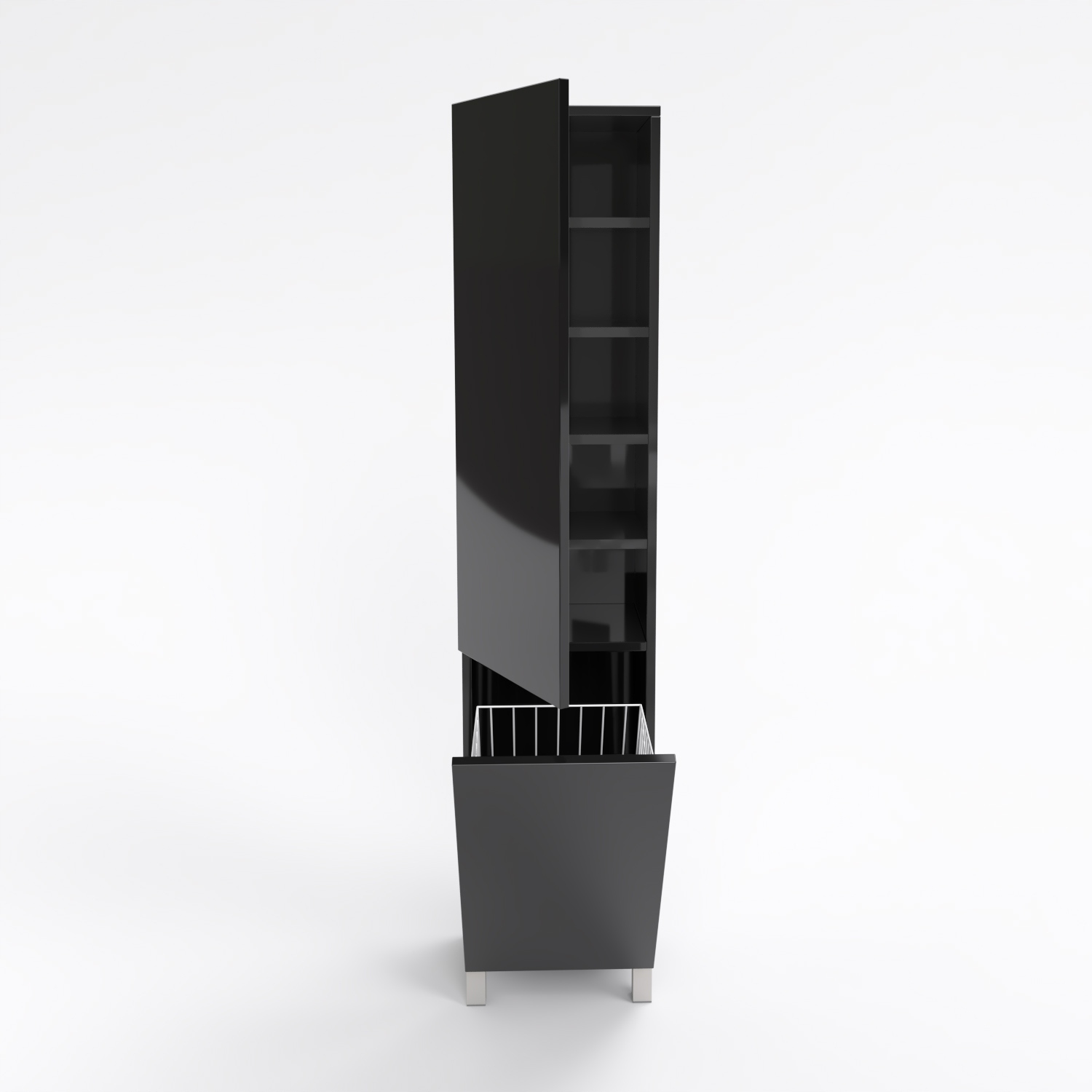 шафа, пост, оснащений кошиком для брудної нижньої білизни. Верхня частина, оснащена регульованими поличками. Кабінет виготовлений з високоякісної МДФ з ультрафіолетовим та ламінованим пластиною. Краї, покриті краю ПВХ. Якість високого блиску вище 100 голосів. Елементи з високим блиском покриті захисною фольгою. Меблі готуються до самозбірки, що є простим та інтуїтивним, заснована на системі дюбелів, яку вам не потрібно клею та ексцентрики, продукт може бути запущений і складений у будь -який час, пакет містить посібник користувача на трьох мовах. Сторони шафи є рівномірними без дірок зовні, це збільшує естетику продукту. Кабінет пристосований для повіслення. Ми не використовуємо пробки всередині, щоб обмежити кількість пластику. Після упаковки шафи ви все одно не бачите технологічних дірок. Упаковані в 2 упаковки