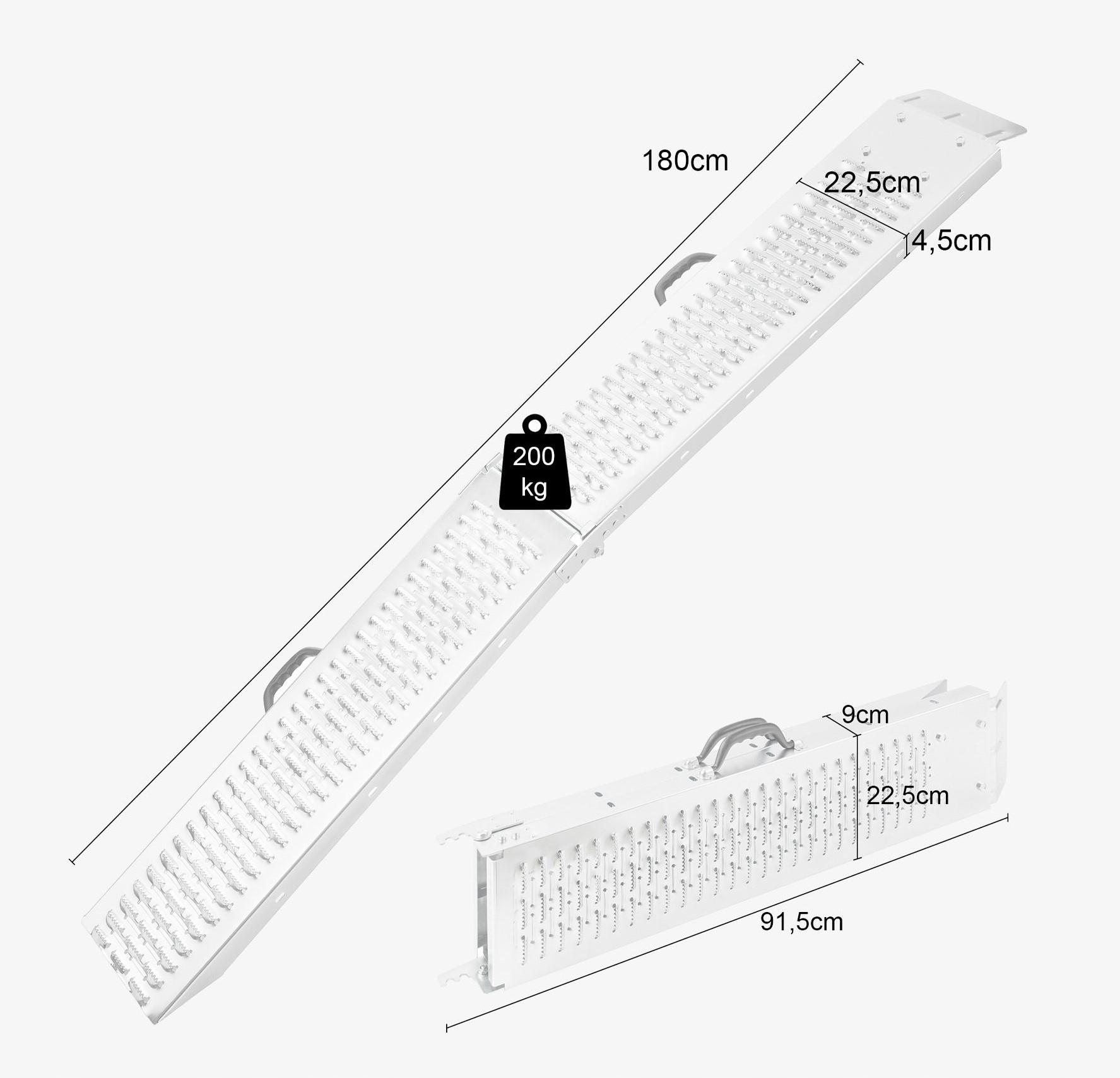 ➡️ Складана рампа витримує максимум 200 кг на рампу для завантаження мотоцикли, газонокосарки, скутери, будівельна техніка тощо