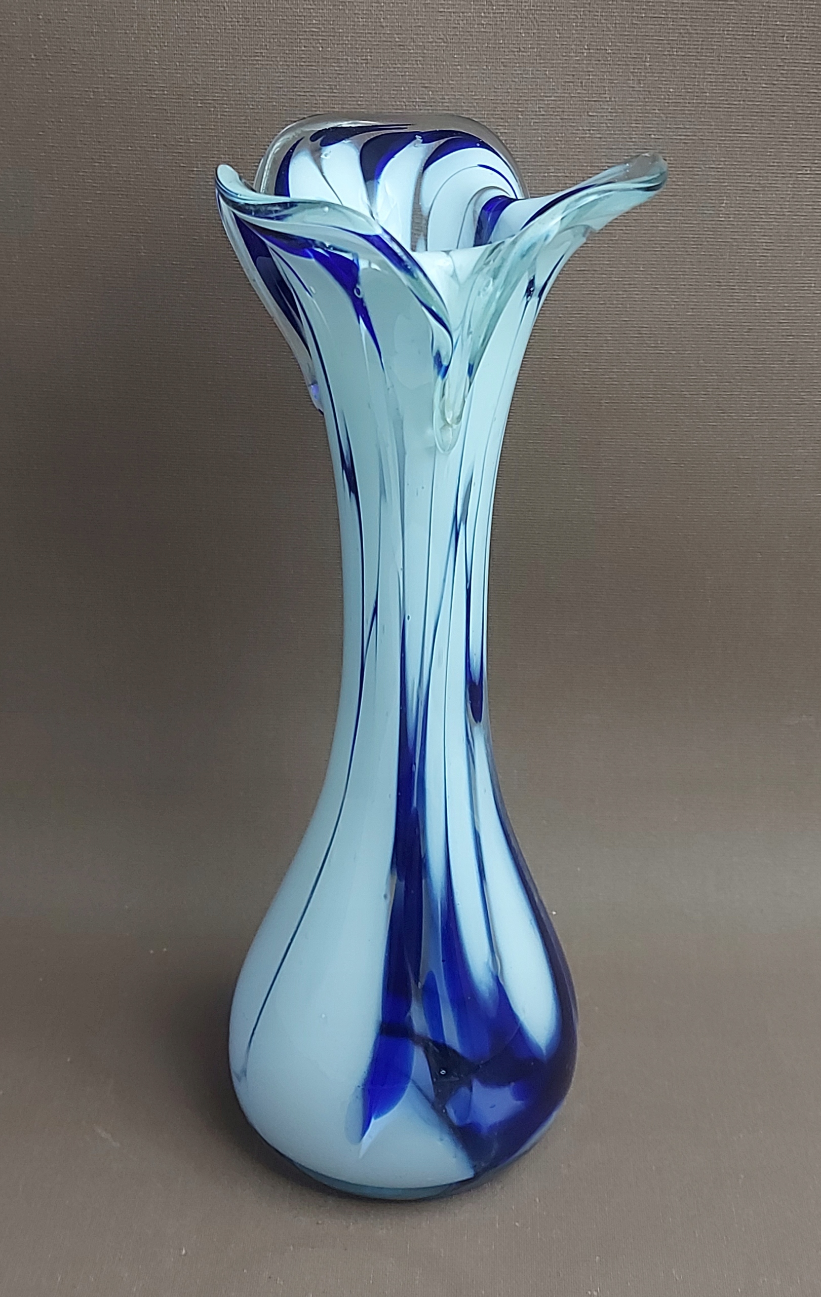 Vase Sękacz HS Ząbkowice White Cobalt Artistic Glass of PRL 70S