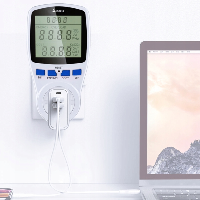 - ЧІТКИЙ ДИСПЛЕЙ – продукт має великий чіткий дисплей, який дозволяє точно зчитувати такі дані, як: напруга, струм, частота, потужність, мінімальна потужність, максимальна потужність, поточна потужність, споживана енергія та вартість споживання (після введення вартості 1 кВт·год).