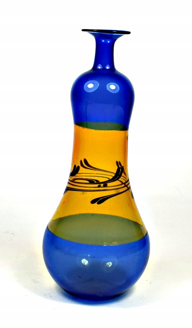 Красива висока ваза. Кришталеве скло — видувне — делікатне, 1950-х/60-х років — дизайн Лауші Альбіна Шеделя. Брелик, пофарбований у скло