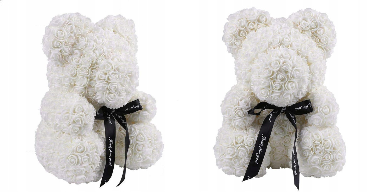 ВЕЛИКИЙ БІЛИЙ ВЕДМІДЬ З ТРОЯНДАМИ 40 СМ + ПОДАРУНКОВА КОРОБКА