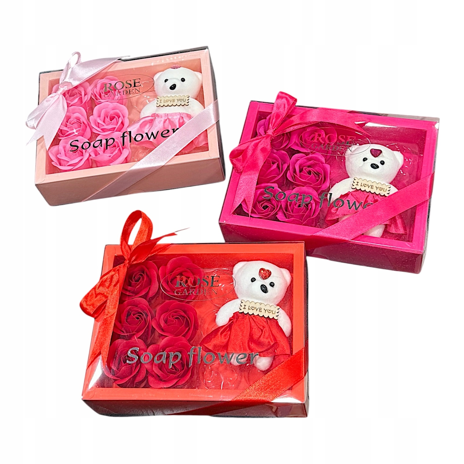 Ведмідь з квітковою коробкою з мильними трояндами квітки мильні квіти з подарунком плюшевого ведмедика
