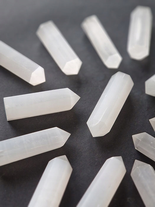 Селеніт використовується для очищення інших кристалів і ювелірних виробів. Цей кристал коронної чакри ефективно очищає та вивільняє будь-який негатив, який може бути в нашому просторі.