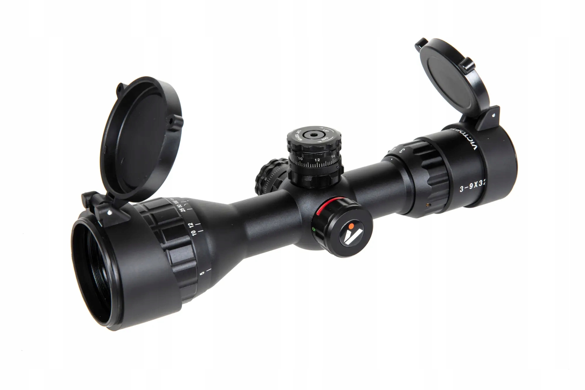 Виготовлений з високоякісних матеріалів, змінне збільшення діафрагми 3-9x та 32 мм. Завдяки підсвічуванням Mil-dot Cross (червоний або зелений) телескоп може бути успішно використаний для проведення і денних, і нічних заходів. Блок живлення - це акумулятор CR1620. Приціли можуть бути плавно регульовані вертикально і горизонтально. Продукт, встановлений на стандартній RIS RIS 22 мм.
