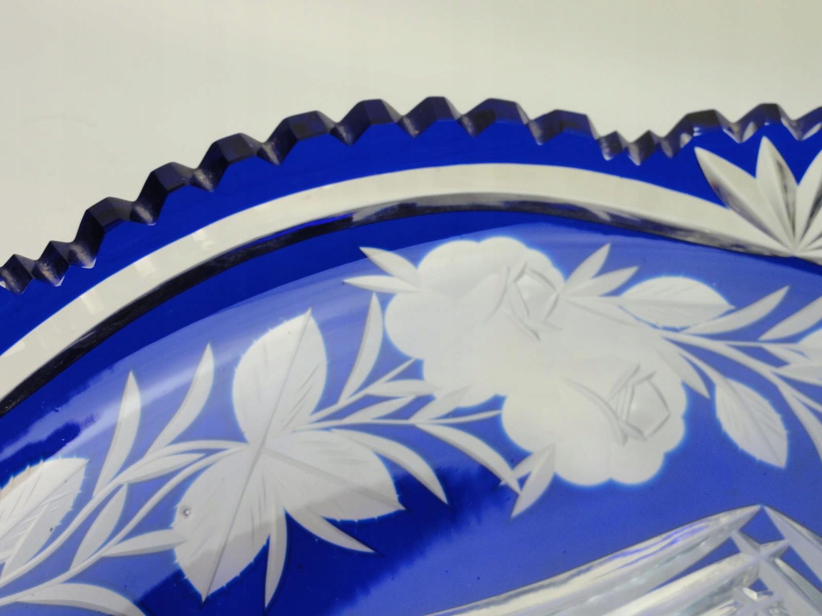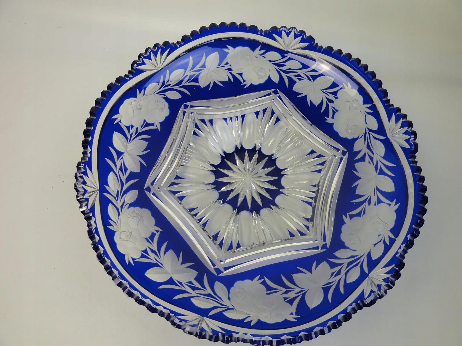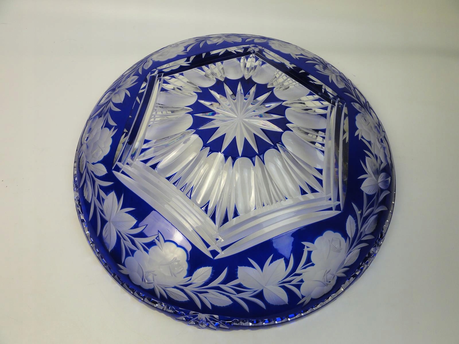 *велика тарілка - кришталева чаша - свинцеве скло, з кобальтово-блакитною глазур'ю, точно відшліфована, з розеткою в основі,