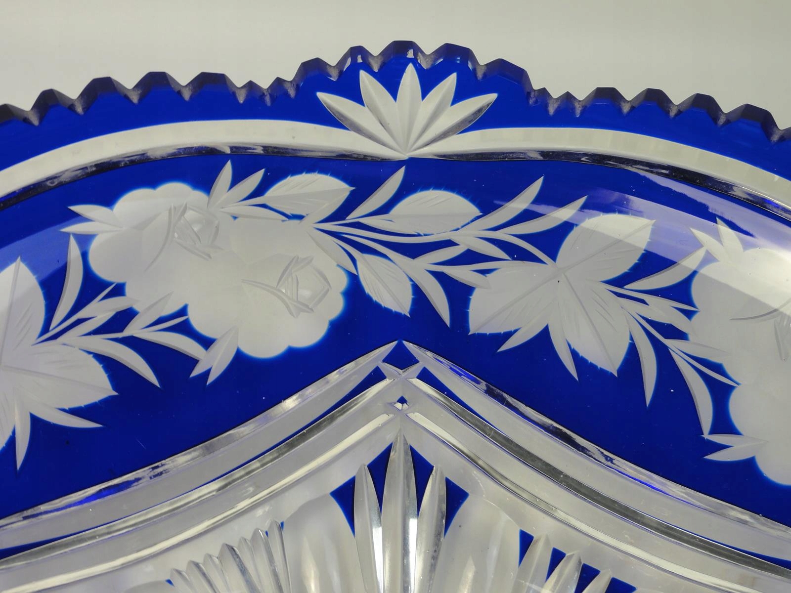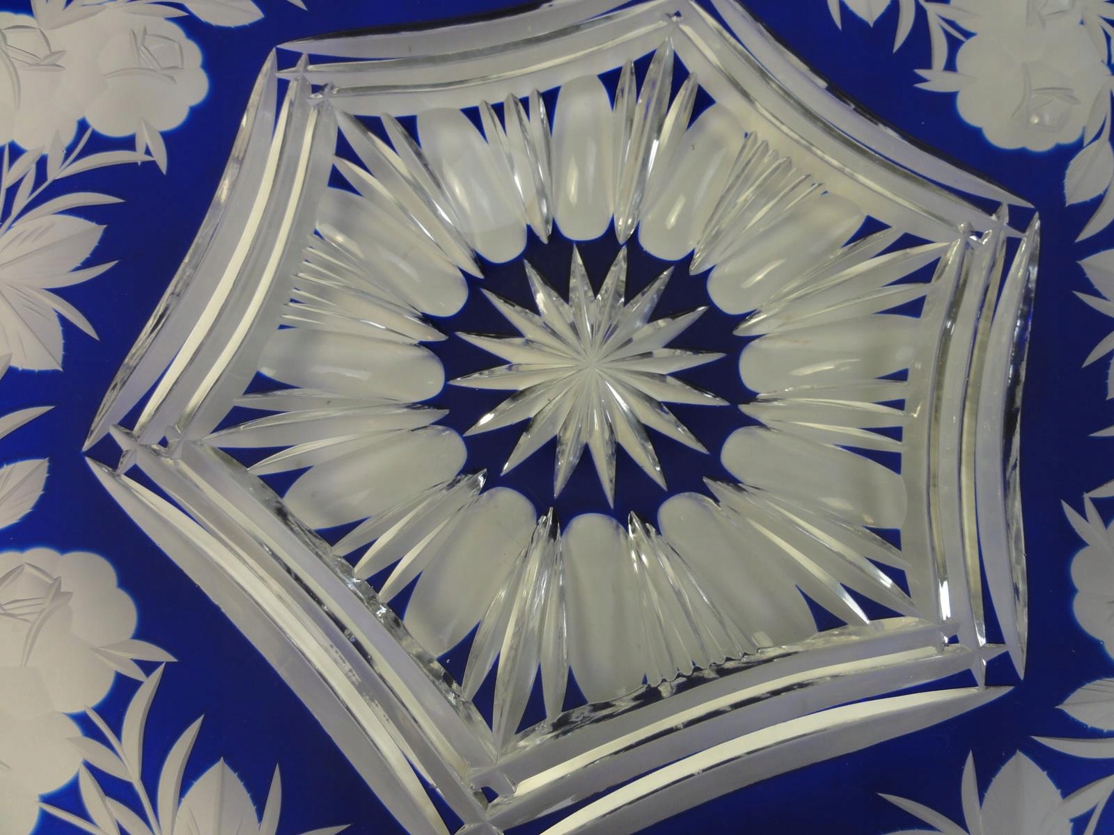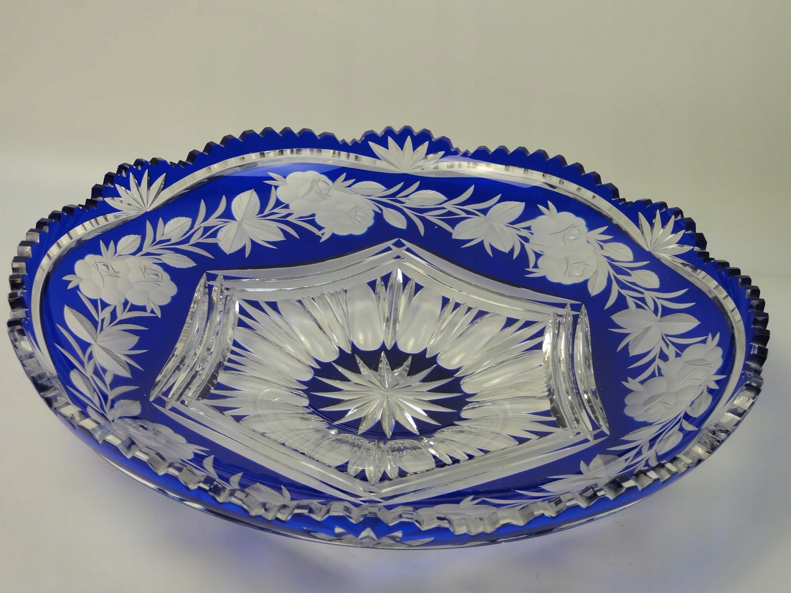 *велика тарілка - кришталева чаша - свинцеве скло, з кобальтово-блакитною глазур'ю, точно відшліфована, з розеткою в основі,