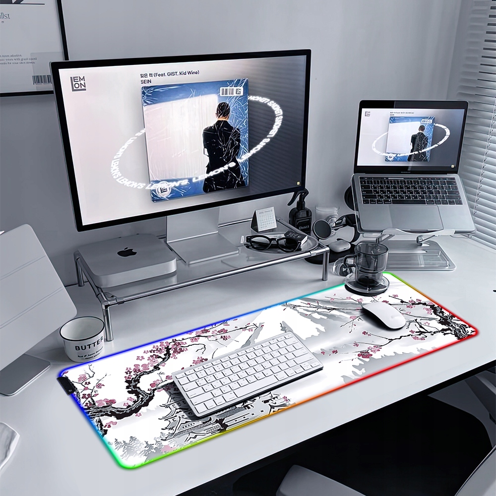 Велика ігрова майданчик під мишкою RGB XXL Японія Сакура Світлодіодна мата 4 мм