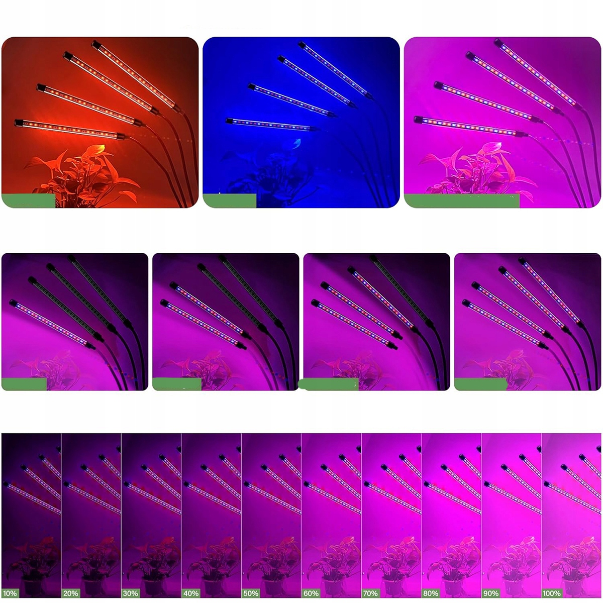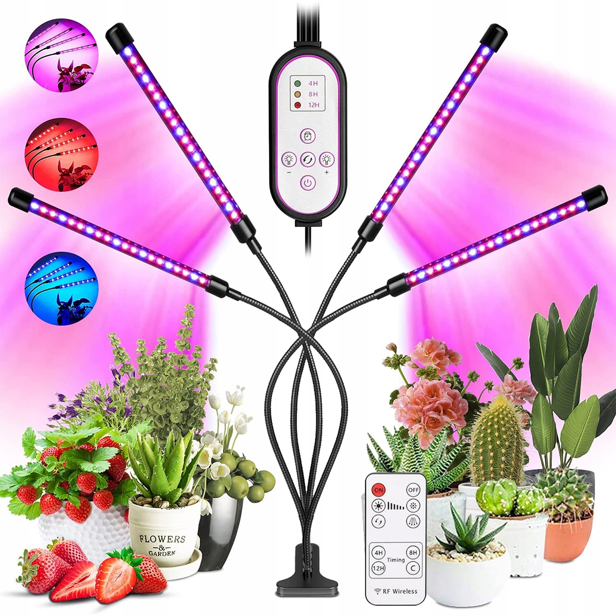 ⭐⭐⭐⭐ ⭐⭐⭐⭐lampa LED для рослин 4-Głowicowa, рослинна лампа, прикріплена до кліпу, 80 світлодіодів, червоний і синій, повний спектр світла для вирощування рослин у приміщеннях, з таймером та пультом дистанційного керування, 3 режимами та 10 інтенсивністю світла до овочів