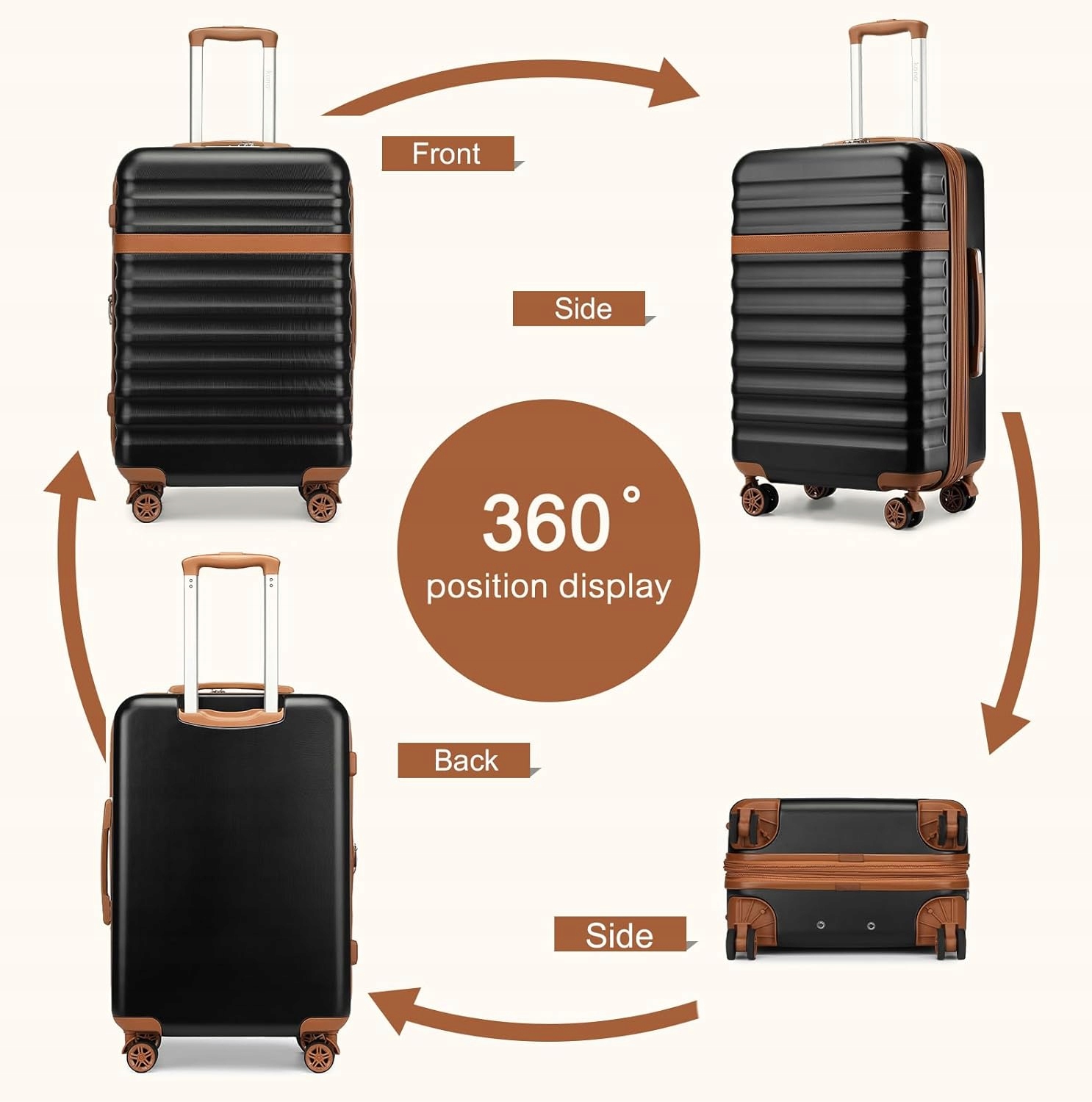 валізи Kono на колесах - середня валіза для подорожей ABS+ПК із замком TSA (XL, 108 л, чорний/ коричневий)