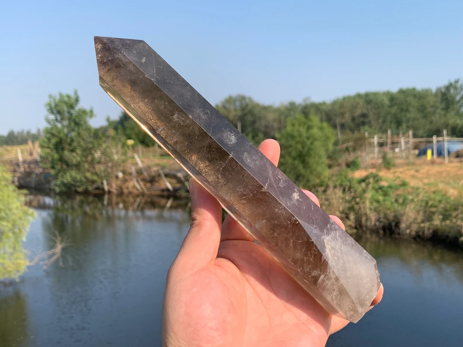 Характеристики проданого зразка: напівпрозорий кристал з темно -коричневим кольором; У димі кварцу є уламки / включення.