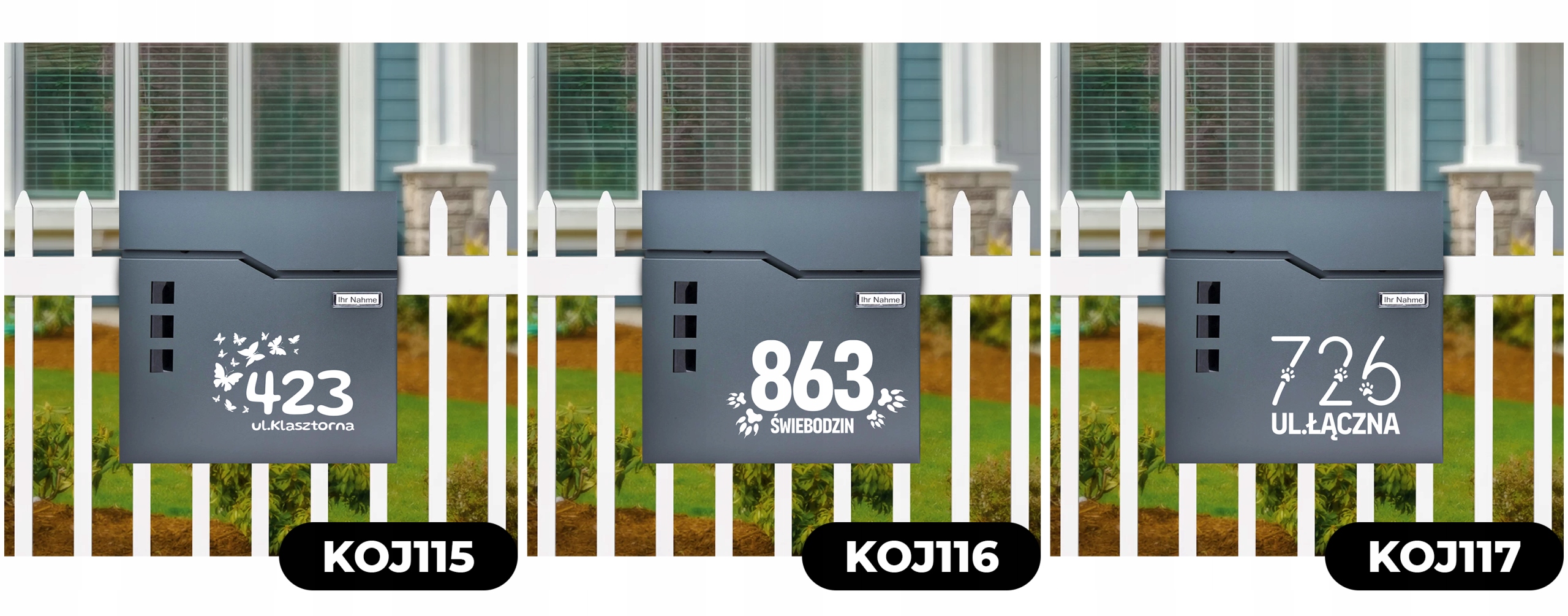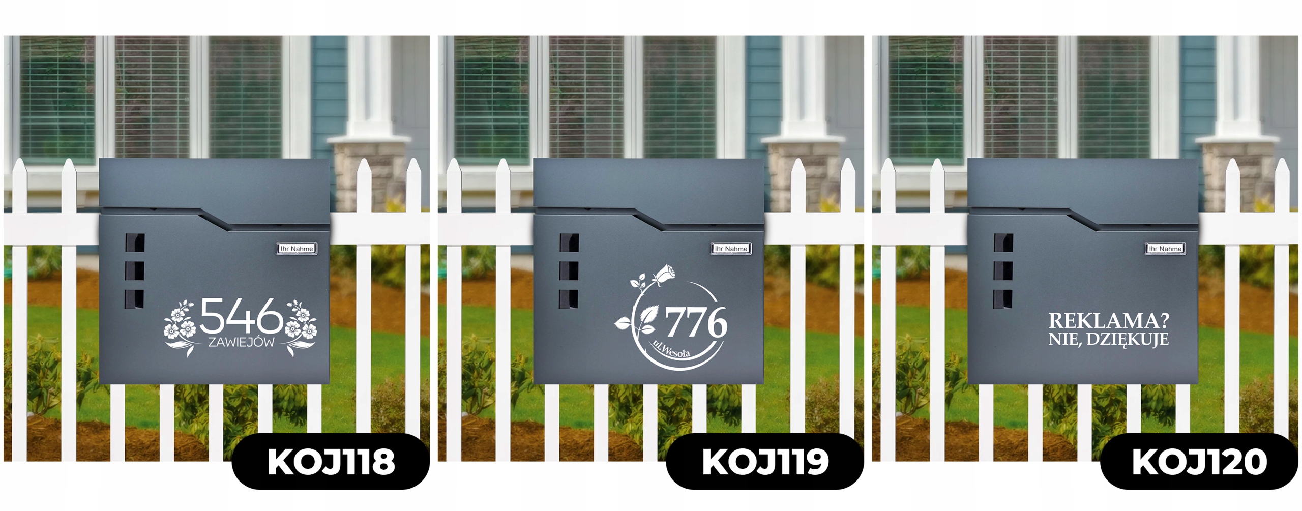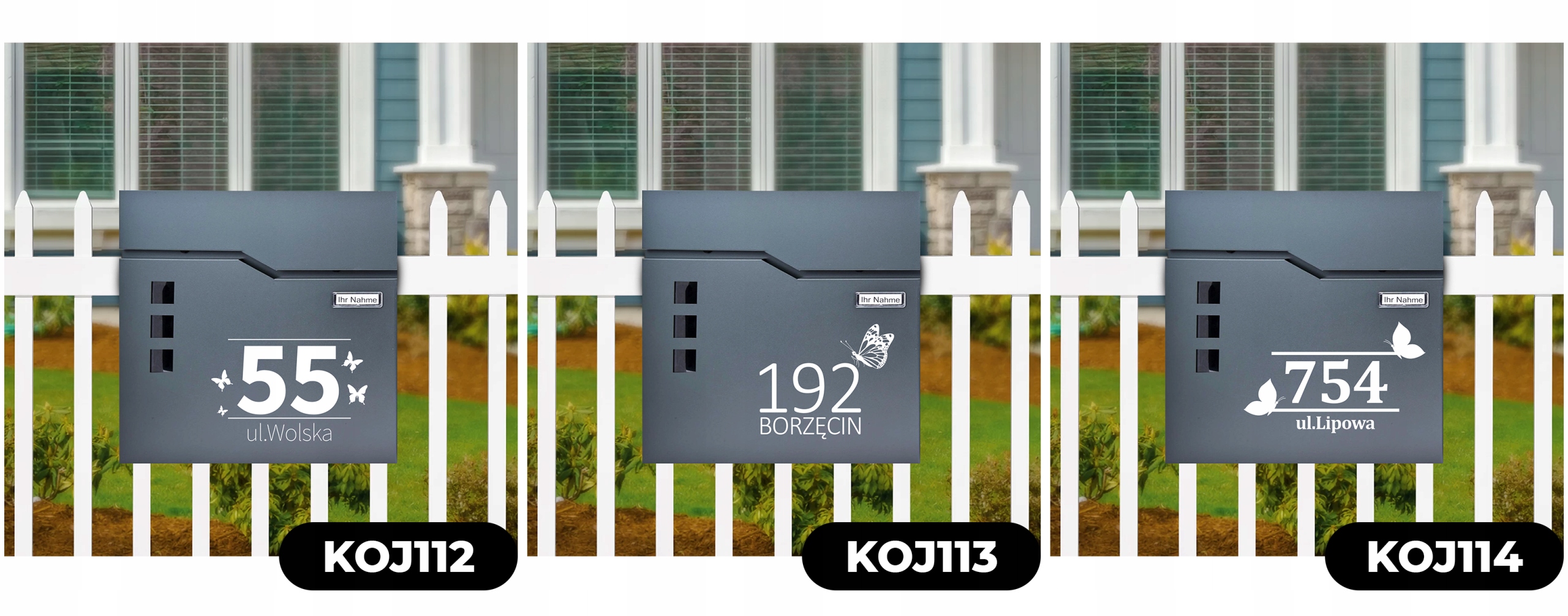 Ми робимо високу якість на коробках, останню технологію УФ -друку (це не наклейка). Ми друкуємо лише назву місця/адреси вулиці. Прізвище розміщується наодинці в місці для картки з особистостями
