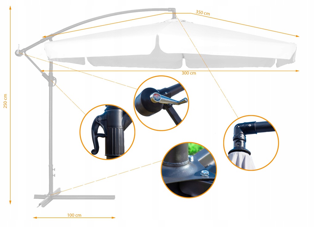 italform Garden Umbrella - надзвичайно корисний і практичний елемент садового обладнання, тераси, балкона або ділянки. Italform садового парасольки - це пропозиція, що поєднує в собі корисні та функціональні значення. Велика чаша з парасолькою на 3 м успішно помістить навіть великий набір садових меблів. Крім того, до парасольки прикріплений корпус, який захистить улюблену парасольку взимку. У парасольці садового саду є водонепроникний матеріал, завдяки якому він на 100% стійкий до погодних умов. Складання та розгортання парасольки дуже проста, парасолька має велику і тверду підставку, виготовлену з порошкової сталі.