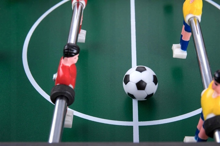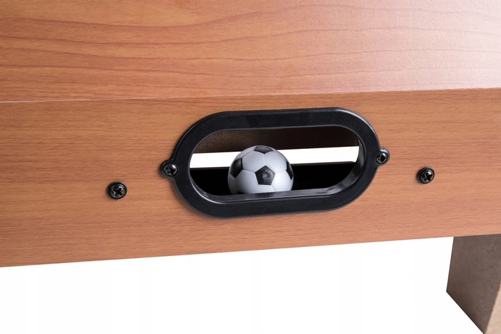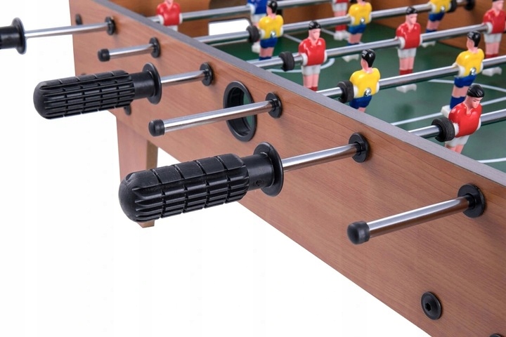 Стіл виготовлений з міцної дерев'яної конструкції, з різнокольоровими аксесуарами. Оснащений воротами з лічильником голів - що покращить гру. Протиковзкі ручки сприятимуть захоплюючій грі.