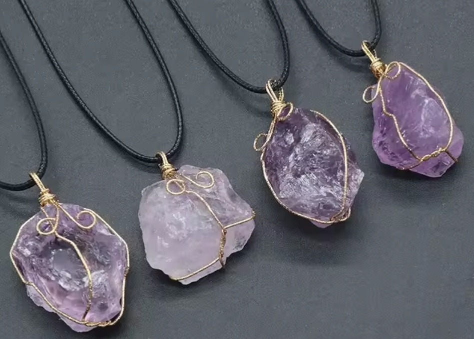 натуральне намисто з аметисту, обрамлене декоративним золотим дротом