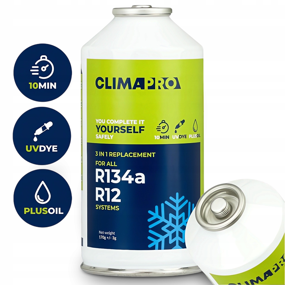 Клімапурапро -холодоагент сумісний із заводськими системами R134A (транспортні засоби з 1994 - 2016) та r12 (транспортні засоби з 1994 року). Ваш автомобіль: