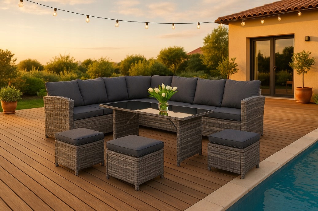 Набір меблів саду Natalia - це ідеальне поєднання сучасного дизайну, функціональності та найвищої якості виготовлення . Цей ексклюзивний набір, призначений для задоволення очікувань найвибагливіших користувачів, перетворить будь -який простір на оазис комфорту та стилю.