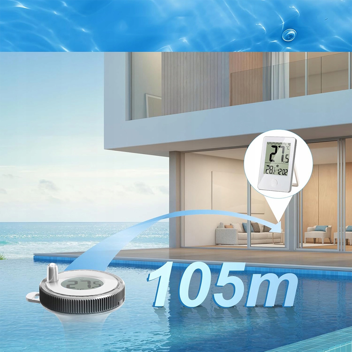 Термометр для басейну YouKuke, плаваючий, простий для читання з монітором температури та вологості, бездротовим цифровим басейном IP67 водонепроникний водонепроникний басейни, ванни, акваріуми, ставки